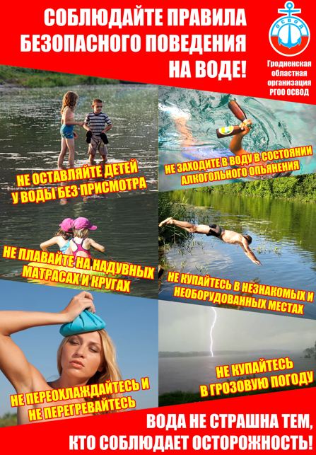 Информация о необходимости строгого соблюдения правил безопасного поведения на воде при отдыхе на водоемах в купальный сезон.